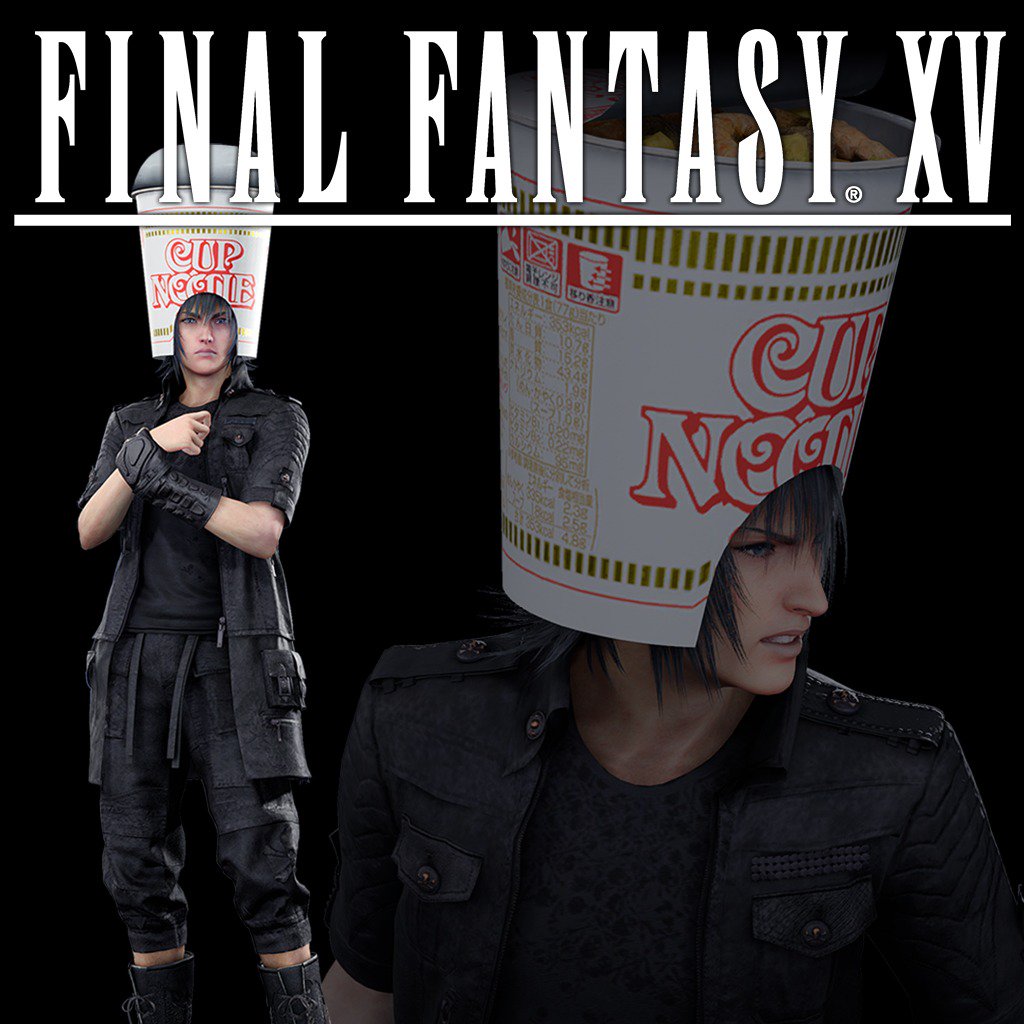 Final Fantasy XV Cup Noodle Helmet DLC (yes a cup noodle