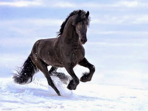 Friesian, running in the snow! | Animals ~ Equine | Pinterest