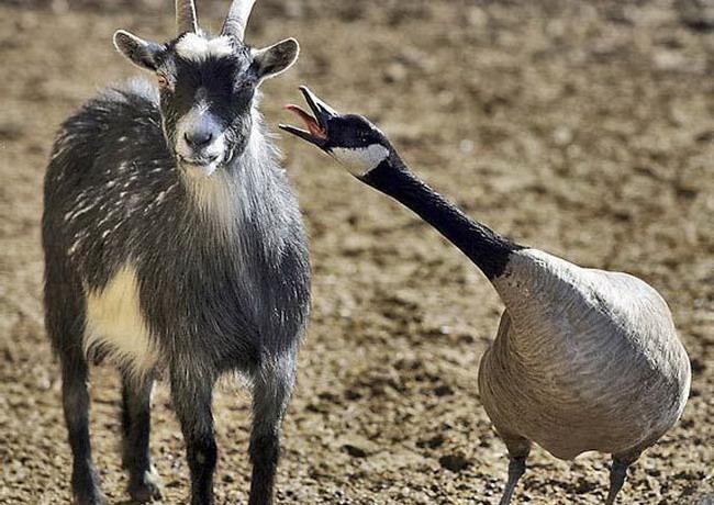 Funny pictures with captions - A goose yelling at a goat