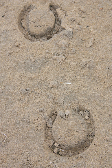 Horse hoof prints in the soft sand left by horses along