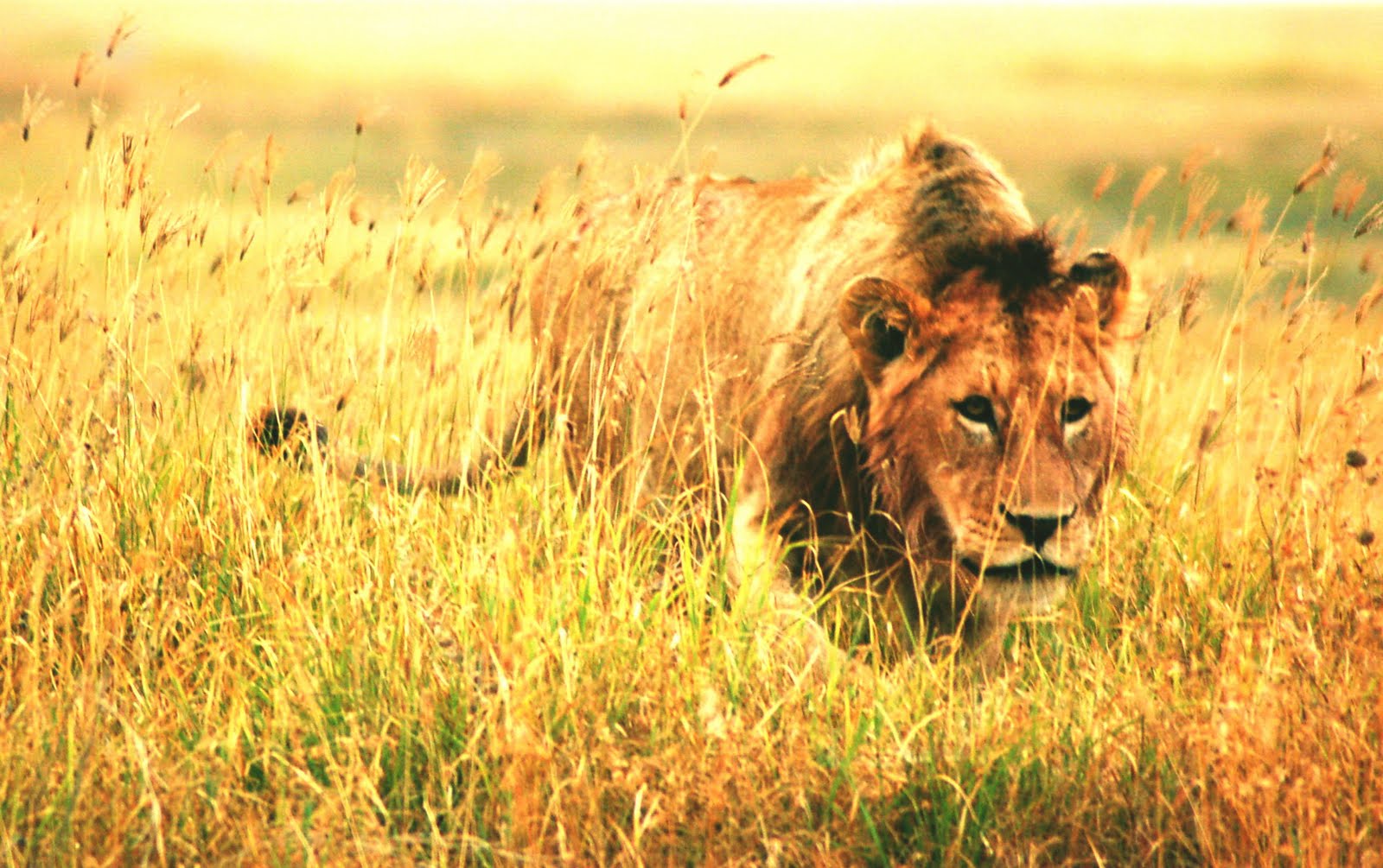 Male Lion stalking through grass (Panthera leo) Maasai