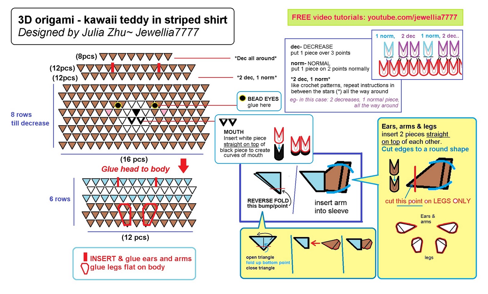 Jewellia handicrafts: 3D origami teddy bear variations