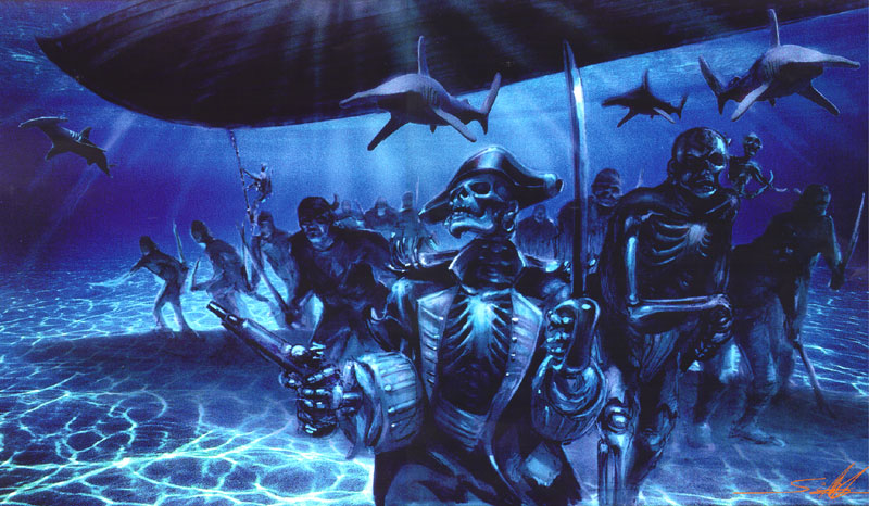 Barnacle covered zombie pirates, a pirates of the