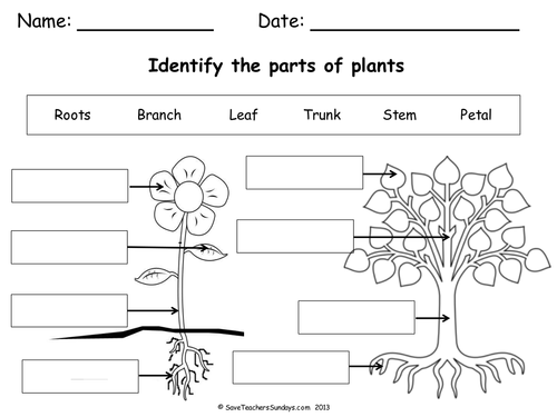 Plant Parts Worksheet Free