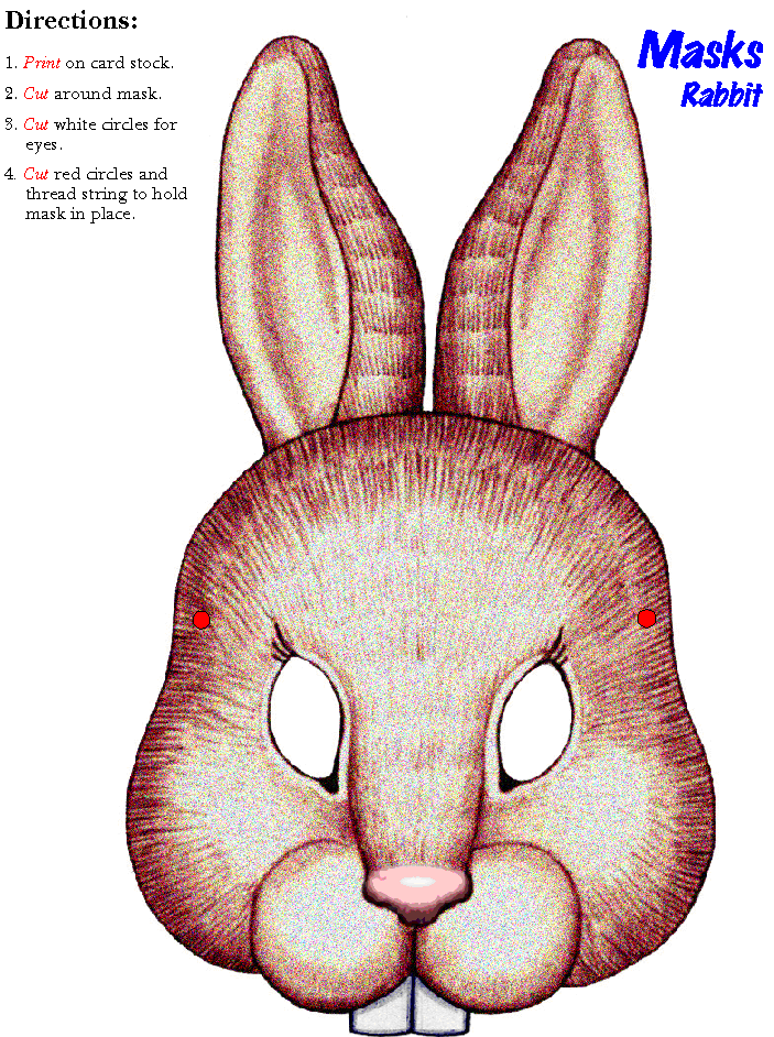 Rabbit mask template. There is also a coloring page
