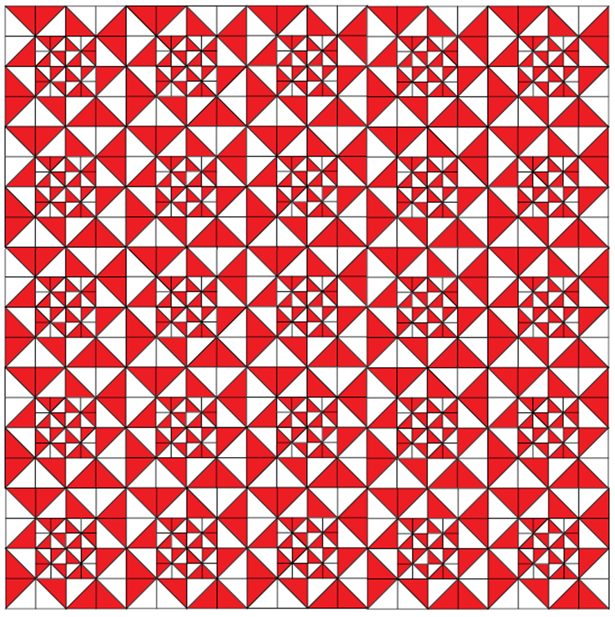 Geometri pattern with gray, red and white arrows