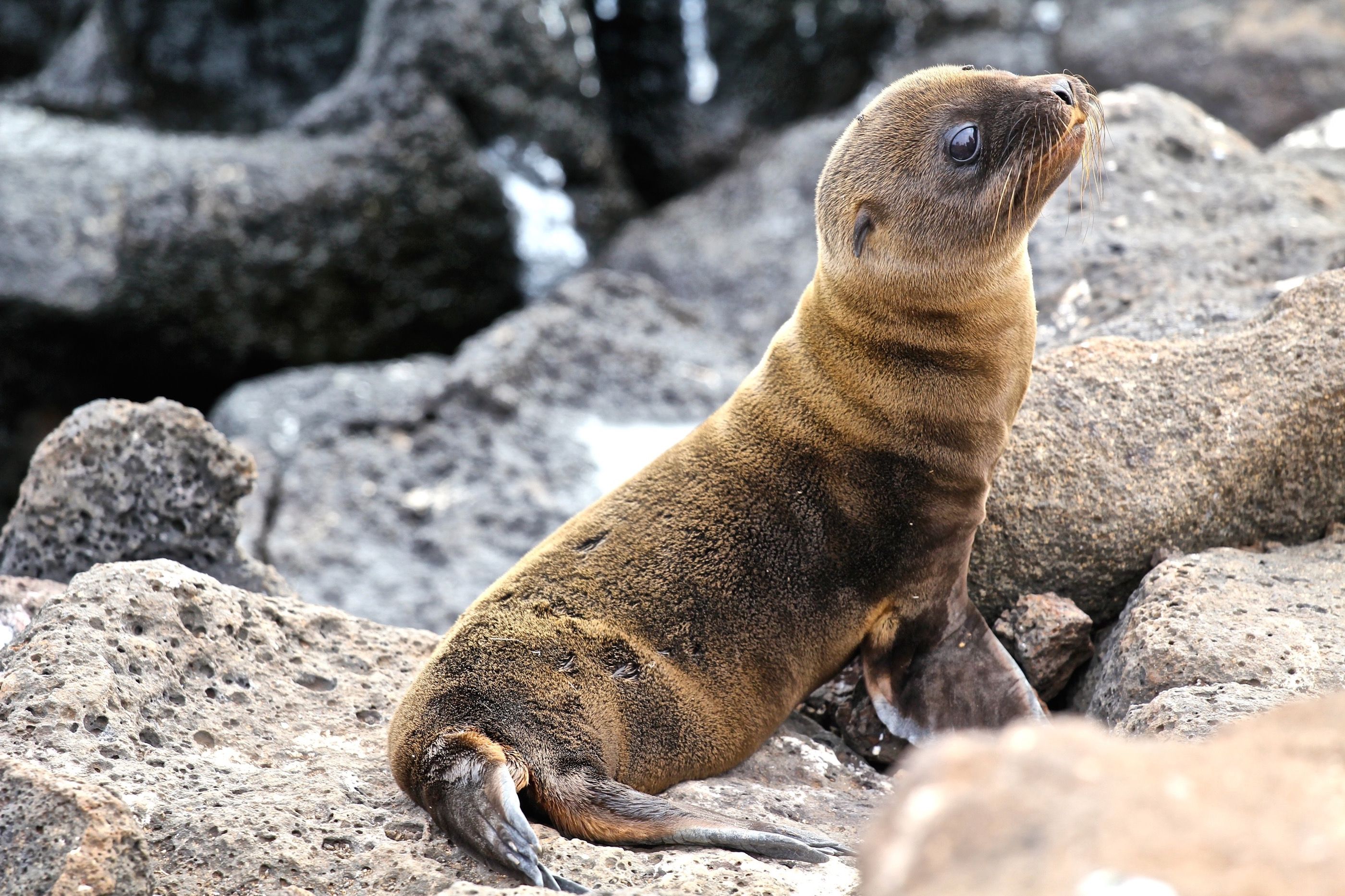 Tiny sea lion pup lets photographer in on a Galapagos