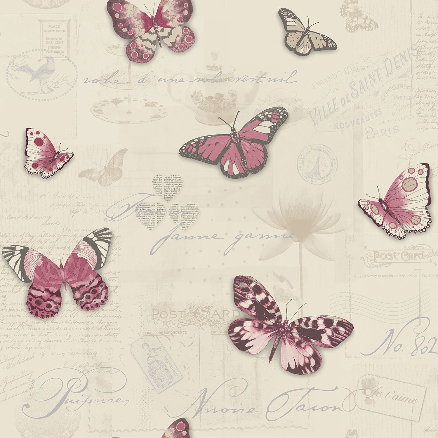 Beige Vintage butterflies Glitter highlight Wallpaper